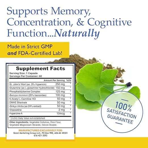 - Pharmaceutical Grade ingredients such as Gingko Biloba, St. John's Wort, and Bacopin.